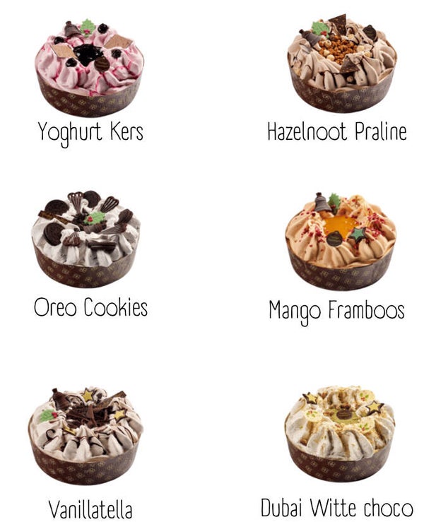 Bestellen kan tot 16 december. De ijstaarten voor de kerstdagen kunnen dan worden opgehaald 20, 21, 23 of 24 december.